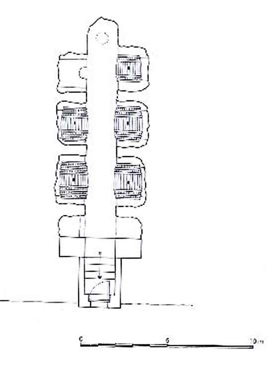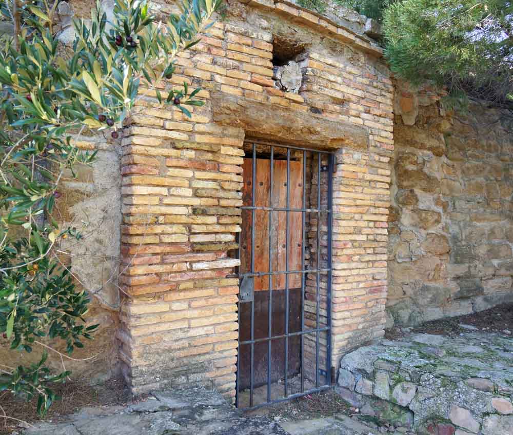 Ante la puerta se dispone un cuerpo de ladrillo, con acceso adintelado, sobre el que se abre un hueco cuadrangular de ventilación.