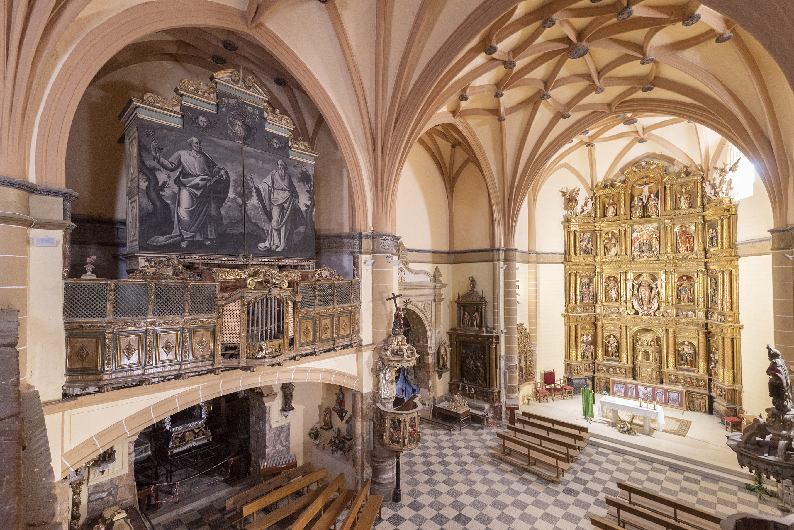 Adosada a los pies del templo parroquial, fue construida totalmente en ladrillo. Consta de tres cuerpos que se adscriben a momentos constructivos diferentes: los dos primeros son de tradición mudéjar, del siglo XV el primero y del siglo XVI el segundo, junto a la fábrica del templo actual, mientras que el tercer cuerpo, edificado en el siglo XVIII, es resultado de la reforma neoclásica que afectó también a los abovedamientos del interior del templo. En el interior presenta, en los dos cuerpos inferiores, estructura de alminar, con machón central de argamasa en torno al cual asciende una escalera cerrada con tosca piedra, mientras que el cuerpo superior aloja el cuerpo de campanas En el exterior aparecen, como hemos dicho, tres cuerpos de planta cuadrada, siendo los inferiores de mayores dimensiones que el superior. El cuerpo inferior, de factura sobria, presenta muros lisos tan solo articulados mediante la ordenación en tres zonas separadas por filas de esquinillas, simples y a tresbolillo; la zona más superior se abre mediante dos huecos de medio punto en cada lado y remata con una leve cornisa sobre ménsulas de ladrillo en saledizo. El cuerpo intermedio, proporcionalmente mucho menor, se articula mediante la disposición de un friso de cruces de múltiples brazos formando rombos sobre el que se dispuso una galería ciega en arcos de medio punto. El cuerpo superior de planta cuadrada presenta menores dimensiones: de traza sencilla y sobria de carácter clásico se articula mediante la apertura en cada uno de sus lados de una vano en arco de medio punto, que alojan las campanas, flanqueados por pilastras. Remata un pequeño cuerpo octogonal.